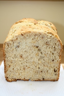 Y yo pensé ... la ayudaremos ... a ver que encontramos que le guste ... y aquí teneis una buena receta de pan, con fibra, nutrientes y buen gusto. La combinación de cereales con las pasas le dan el punto.
